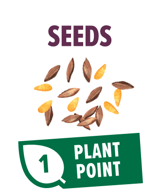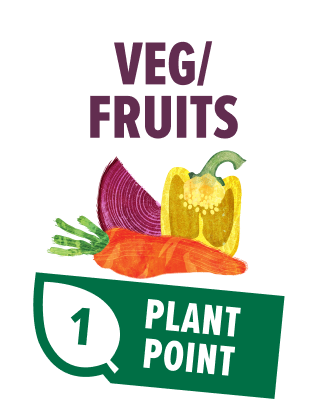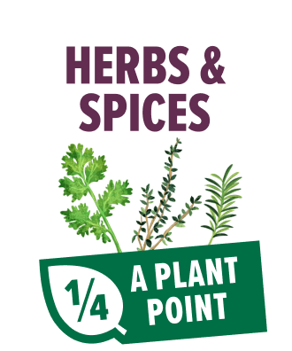 Don’t worry, you won’t need to get a calculator out just yet. To help you count your Plant Points, we look at foods in three groups: whole foods, such as fruit, veg, seeds and wholegrains, which are worth 1 point. And herbs and spices, which are ¼ of a point.