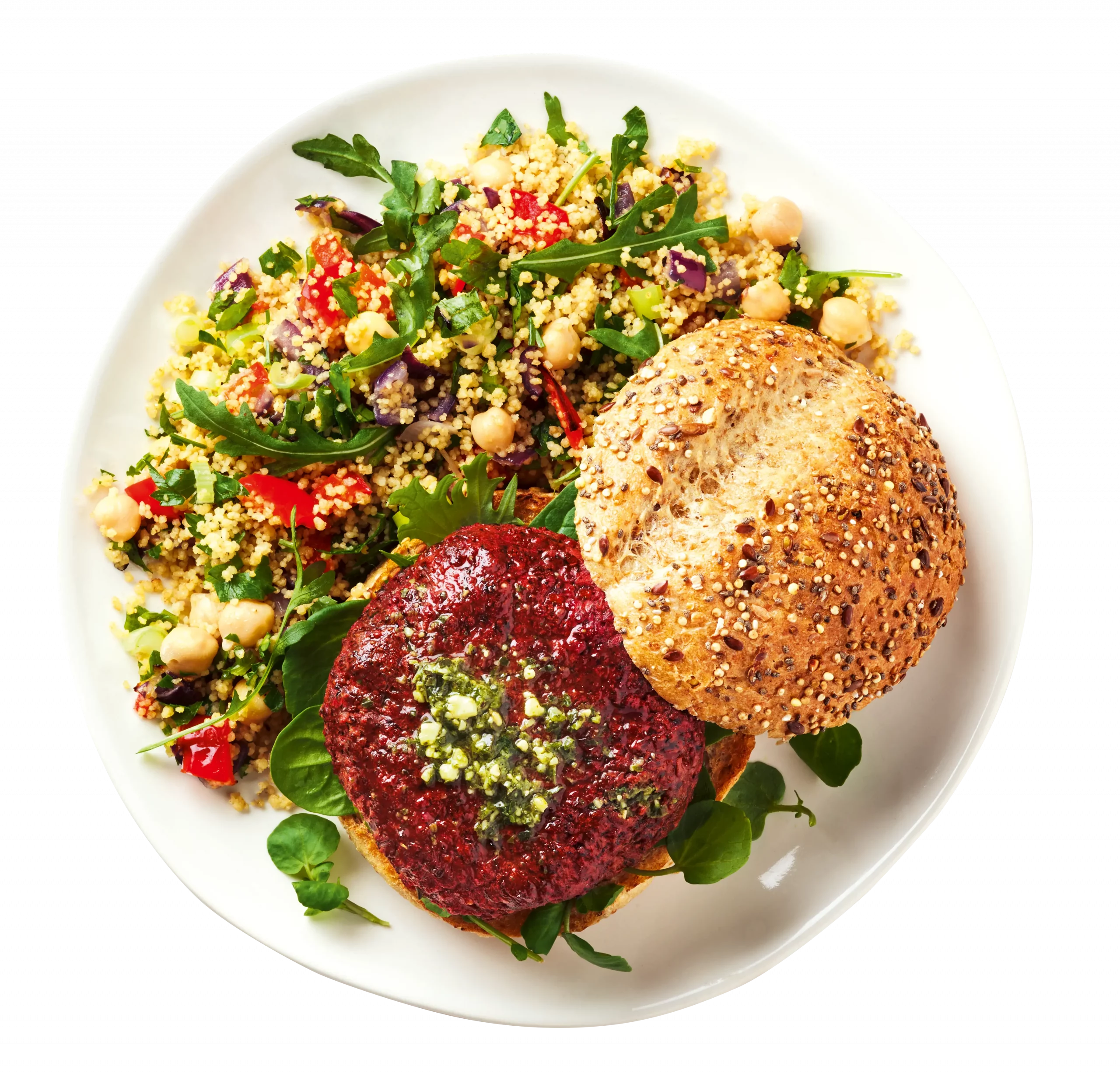 Chickpeas (26%), Beetroot (22%), Courgette (7%), Carrot (7%), Potato Flake, Kale (6%), Red Onion, Quinoa (5%), Rapeseed Oil, Mint, Coriander, Garlic Puree (Water, Garlic Granules), Salt.