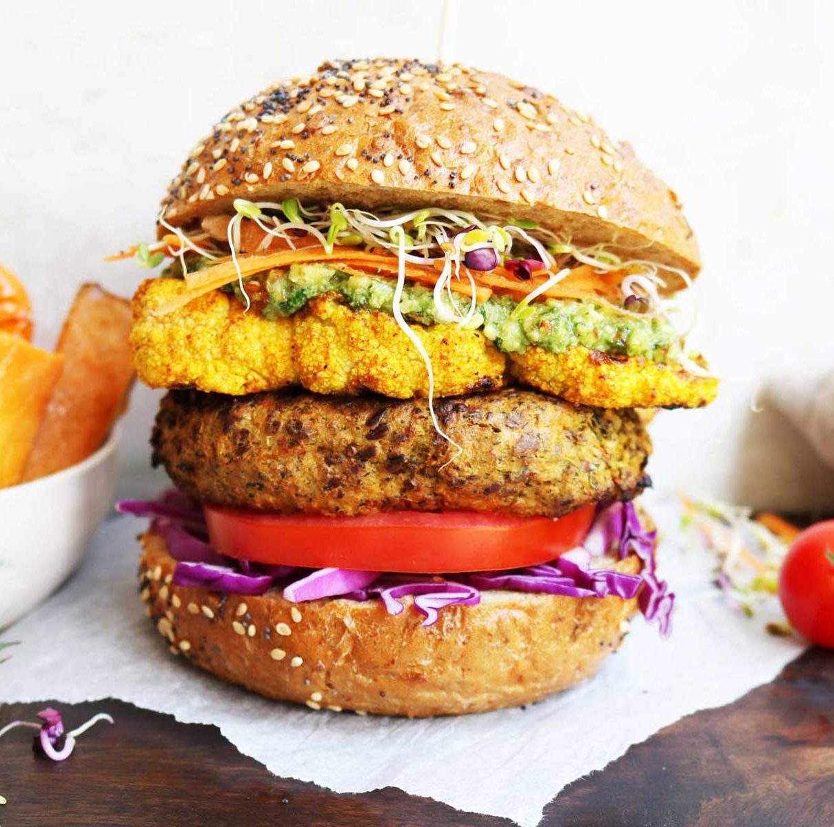 Creamy cauliflower combined with rich Indian spices make these plant-based Bombay burgers a sure-fire dinner winner. Low in saturated fat and high in fibre, they’re a fantastic option for both vegans and meat-eaters!