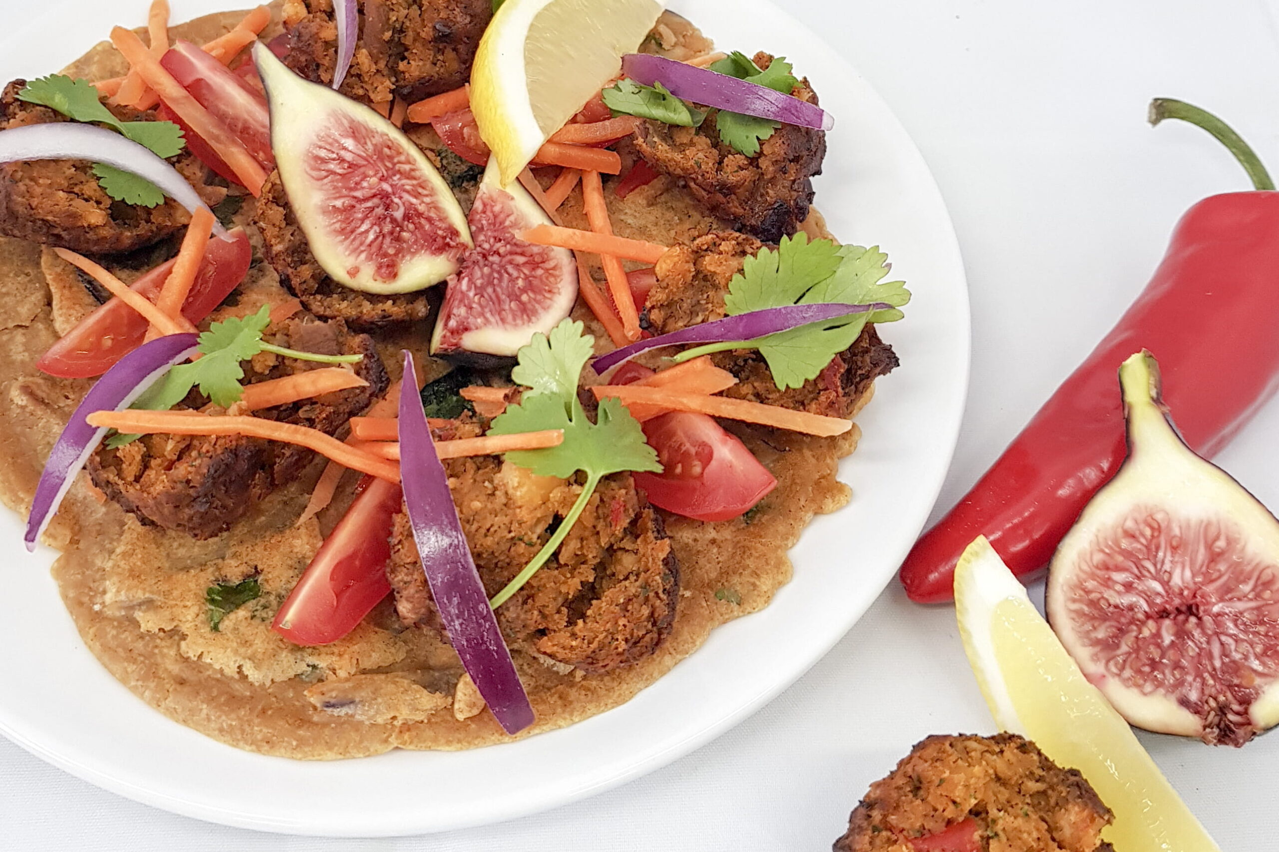 Grated Carrot/ Sliced Red Onion & tomatoes/Figs/ Fresh Lemon/Pomegranate Mollases /fresh Coriander/Natural Yoghurt